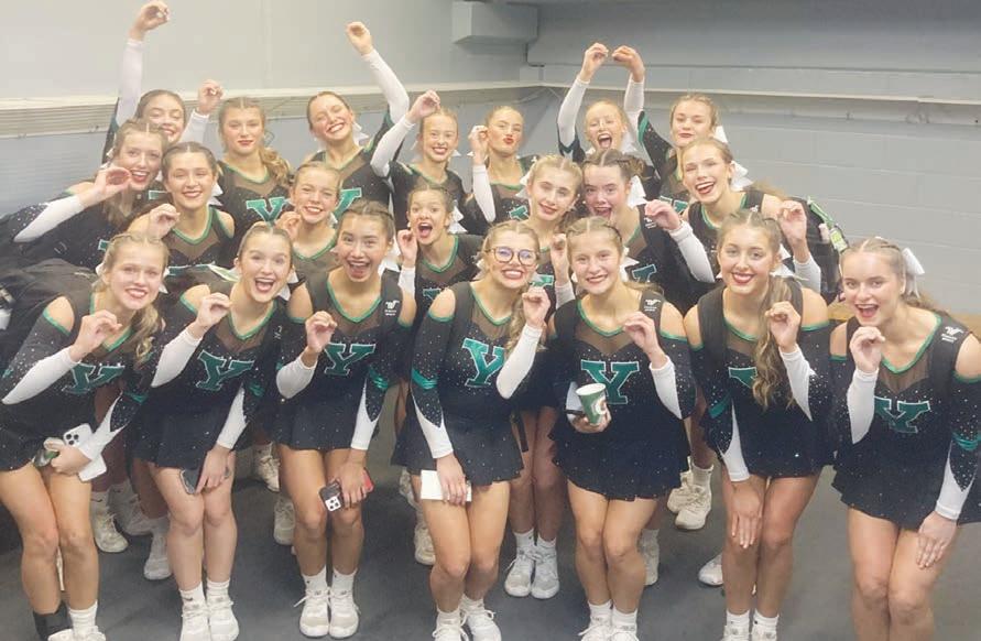 The York varsity cheer team that qualified for state placed 11th in the competition held on Friday, Feb. 3 at Grossinger’s Arena in Bloomington. Each girl is forming a “0” – a zero – with their hands because their performance had zero deductions. It’s called “hitting zero” in the cheer community. The players include (listed alphabetically, not as pictured): Megan Brandt, Mary Connor, Mathilde Cronin, Danica Delury, Angelina Ferriola, Ava Gecsey, Holly Gollias, Meadow Gollias, Julia Hessling, Chloe Hoang, Tati Kranov, Grace Locascio, Alicia Macleod, Gabby Nazar, Avery Orel, Chloe Peot, Anne Plummer, Chloe Scott, Natalia Serpe, Ashley Simonis, and Sydney Witruk. The team is led by head coach Emily Bowman and assistant coach Melissa Mertens.