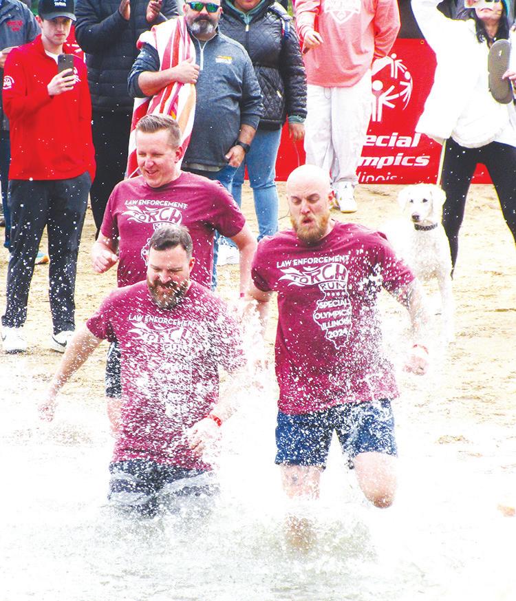 Approximately 350 participants from around the Chicago area, and around the state, who took part in Saturday’s Illinois Law Enforcement Torch Run Polar Plunge at the Oak Brook Bath & Tennis Club were greeted with above-average temperatures for this time of year. However, when they stepped into a pond at the Bath & Tennis Club, well, it sure felt like winter, as the water temperature was around 35 degrees. Nevertheless, these individuals, along with teams comprised of police departments, schools and corporations—as well as teams consisting of friends, families and from around the community—gladly plunged into the frigid water in order to help benefit Special Olympics Illinois. Over $2.3 million was raised for Special Olympics Illinois—a not-for-profit