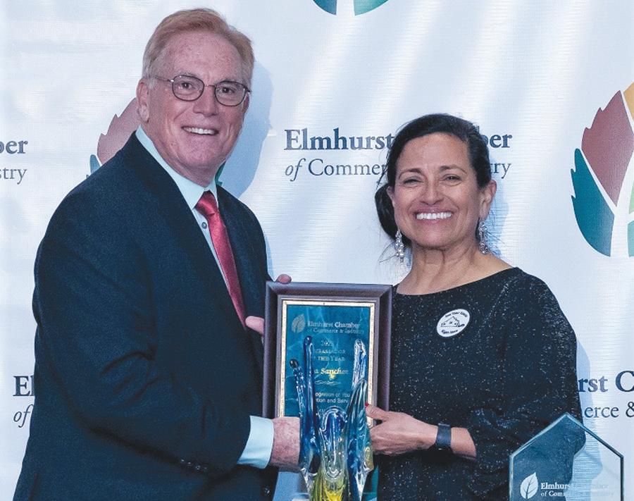 (2000), Elmhurst Chamber of Commerce & Industry; William C. “Bill” Gooch Jr. (2001), Community Bank of Elmhurst; Willis Johnson (2002), York Theatre; Fred Messerschmidt (2003), Elmhurst Federal Savings & Loan; Jim Van Ewyk (2004), Pfund and Clint Florists; Jacquelyn Haddad (2005), Elmhurst Junior Women’s Club; Thomas O. Myers Jr. (2006), Thomas O. Myers Real Estate; Abner Ganet (2007), Leonard’s Men’s Store and Mayor of Elmhurst; Jan Pauli (2008), Pauli’s Marathon; Bob Schiller (2009), Schiller Real Estate; Thomas D. Marcucci, fourterm Mayor of Elmhurst (2010); Rich Grodsky, Elmhurst Park District (2011); Pete Cruger, Elmhurst Independent (2012); Doug Beach, Elmhurst College Jazz Band Director (2013); Betsy Hanisch, Elmhurst businesswomen, civic leader and community volunteer (2014); Ralph Pechanio (2015), retired banker, civic leader and community volunteer; Darrell Whistler, retired businessman, civic leader and community volunteer; Jack Island (2017), Owner of The Silverado Grill; Genie Urick (2018), cable TV producer, author and community volunteer; and William “Bill” Shanklin (2019), Post 187 Sergeant-at-Arms; Scott and Charity Ahlgrim (2020) of Ahlgrim Funeral Home; Dr. Bryant and Jeanette Cureton (2021), former EC President and First Lady, and John DeVries (2023), Founder of DeVries Animal Hospital. For tickets and information about the upcoming Gala, visit elmhurstchamber.org.