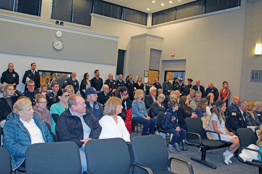 City Council Chambers were packed with fire personnel from communities throughout the area, who came out to celebrate the promotion of three Elmhurst fire officials.