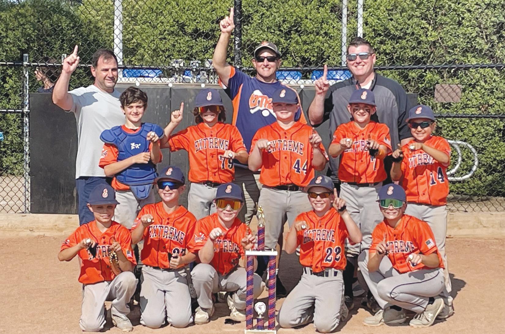 The 10u Elmhurst Extreme orange team went a perfect 4-0 and won the Park Ridge Uncle Sam Slam baseball tournament this past weekend. The team tallied 62 hits across the 4 games and beat top teams including Edgebrook Thunder Gold (twice), Stoppers Baseball Club (Ewald) and Park Ridge Warriors Blue. Pictured with their championship hardware are (bottom row, from left): Chase Olsen, Tyler Langenstrass, Parker Gabuzda, Liam Northern, Logan Osbolt; (middle row): AJ Fleming, Brandon Crouch, Andrew Boeh, Grant Rodriguez, Dominic Magnelli; (top row) Coach Magnelli, Coach Fleming, Coach Rodriguez.