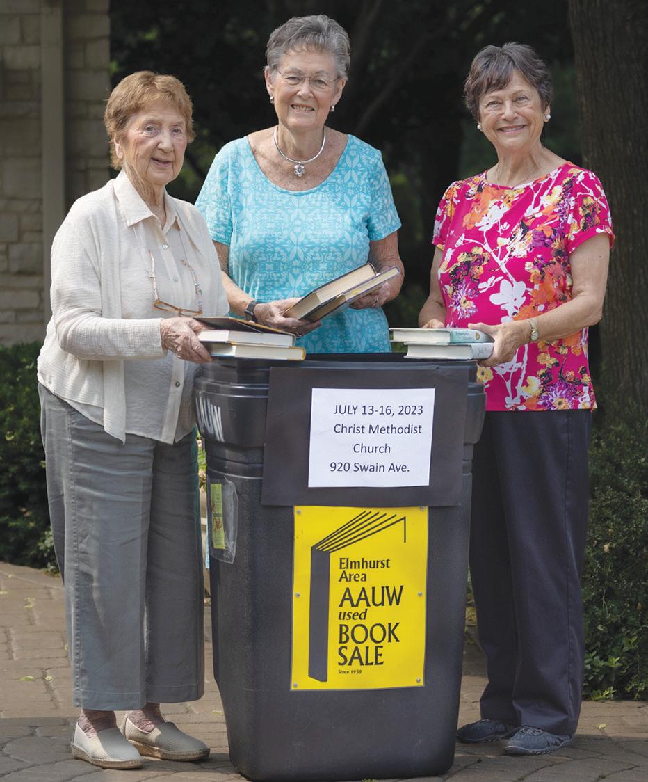 Pictured are 50-year members of the AAUW Elmhurst Area Branch including (from left): Marcia Goltermann, Janet Hodge, and Genie Urick, who are looking forward to the Elmhurst AAUW Used Book Sale coming this weekend July 13-16 at Christ United Methodist Church at 920 Swain Ave.