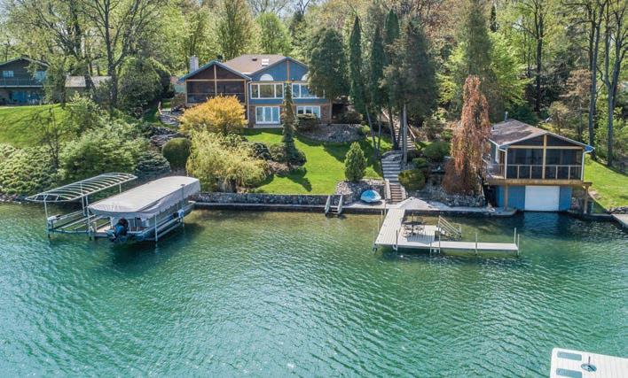 N7729 Laura Ln, Elkhorn - Lakefront estate on 142’ of sand frontage on Lauderdale ‘’Gold Coast’’ situated on manicured 1.28 wooded acres completely fenced and gated. That’s just the start to this lakefront dream. The lake greets you as you walk into the 4BD, 4.5 bath main house with open foyer to eat-in Ktch and lakeside dining room, LR with fireplace and slider to screened porch with vaulted ceiling. Master en-suite lakeside with private deck. Family room walk-out to cement patio. Brick fireplace and wet-bar plus 4th BD and Bath. Rare wet boat house with 2 Bd, 1 bath guest cottage above with full ktch, living room and screened porch all vaulted. This gets even better with a 36 x 30 storage garage with 4 finished rooms all vaulted heated and cooled. Plus, another 3.5 heated detached garage $3,799,700