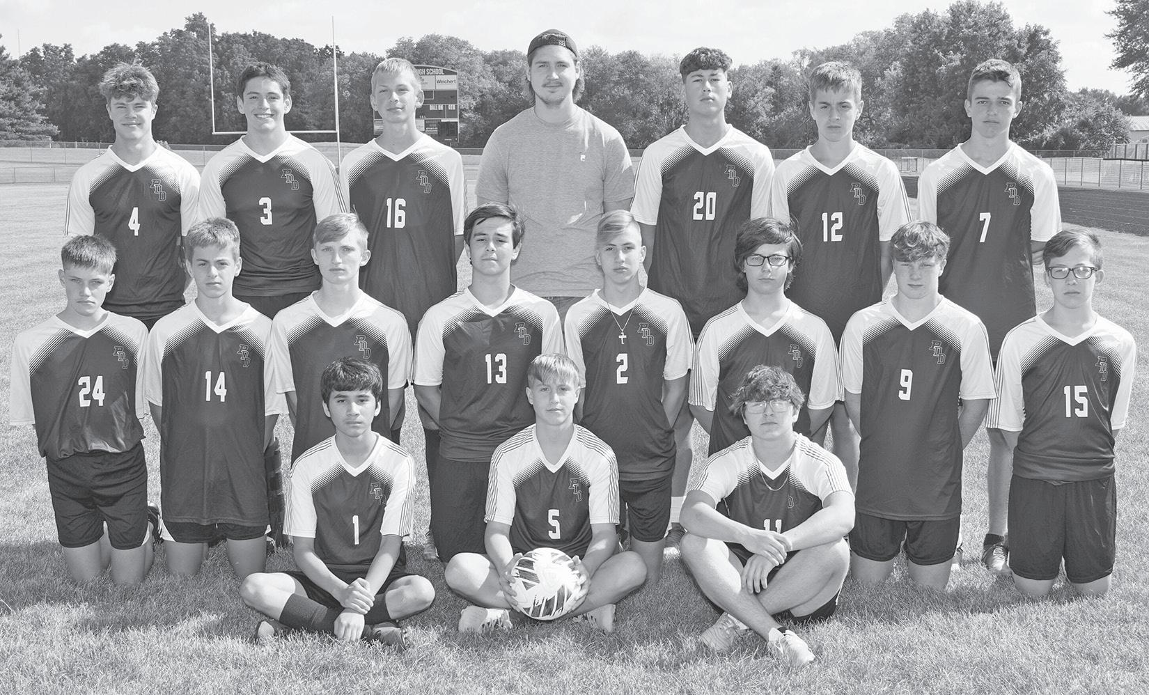 Front row, from left: Marshal Groves, Nathan Munson, Andres, Suarez. Middle row: Caleb Beatty, Dennis Hopper, Tyler Weber, Logan Connell, Dylan Smith, Francisco Suarez, Tyler Anderson. Back row: Head Coach Marty Contreras, Manager Brooklyn Connell, Sam Frank, Danny White, Asst. Coach Alex Snyder, Manager Zayne Hoffman.