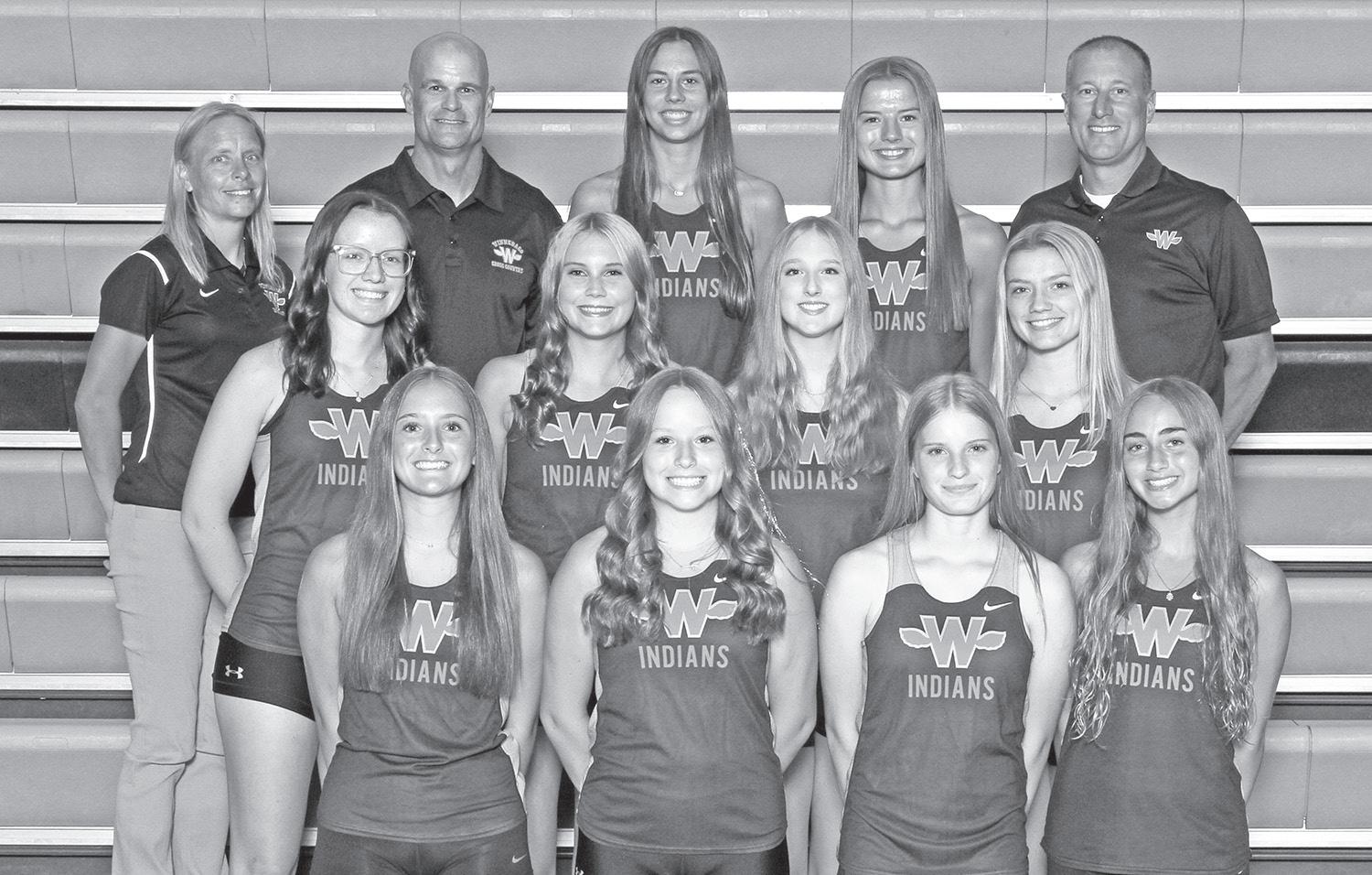 From left: Abigail Moser, Meredith Jones, Claire Dietrich, Jersi Szakalski, Hailey Scheck, Abby Connell, Hailey West, Paityn Kann, Sarah Nyamwange, Alyssa Bauer, Delaney Henert, Kallie Yianibas, Addie Fuller, Coach Breahna Stewart.