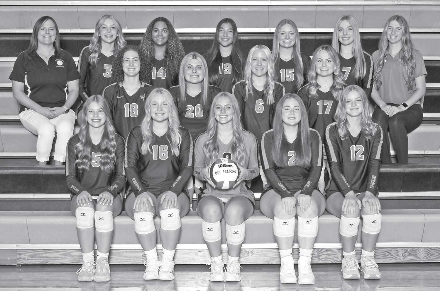 Front row, from left: Sofia Berg, Ameris Correa. Middle row: Gwendolyn Baker, Avery Christenson, Brooklyn Lee, Elizabeth Henderson, Anna Bradle, Joslyn Nanni. Back row: Coach Jamie Mccarty, Abigail Gilliam, Bailee-Jo Nelson, Mya Janssen, Haley Jones, Brooklyn Hodge, Alyssa Purvis, Brooke Jordal, Asst. Stephanie Anderson. Not pictured: Kailey Shrader, Kenaddie Parson.