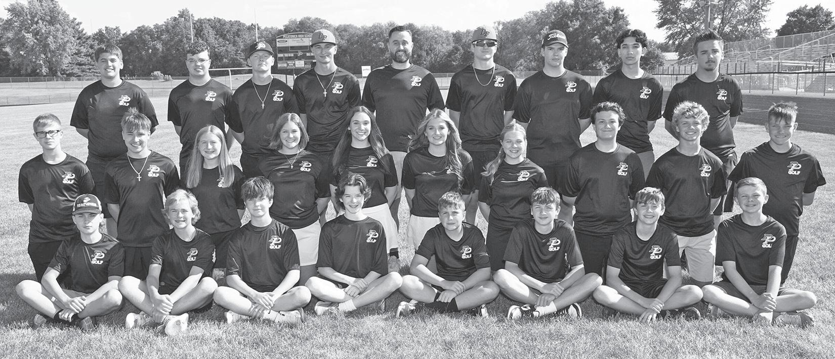 Front row, from left: Gunnar Manning, Jaxon Boomer, Brady Hearns, Nicholas Fraser, Wyatt Davis, Parker Larrow, Riley Miller, Jarrett Forde. Middle row: Calum Scroggins, Jordan DoBran, Micayla Peterson, Lauren Miller, Sam Deppe, Lexi Beck, Arden Bielskis, Zander Dean, Lukas Rossow, Carson Wideman. Back row: Drew Lapp, Brady Scroggins, Tyler Anderson, Michael Conroy, Coach Josh Beck, Mason Peterson, Zach Leahr, Gianni Alani Rodriguez, Gavin Fox.