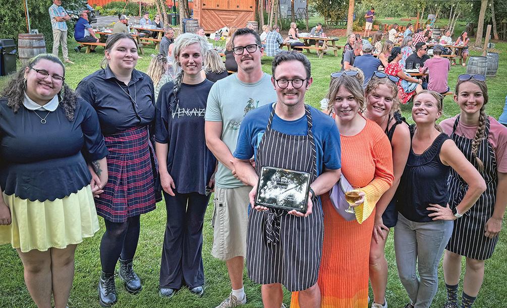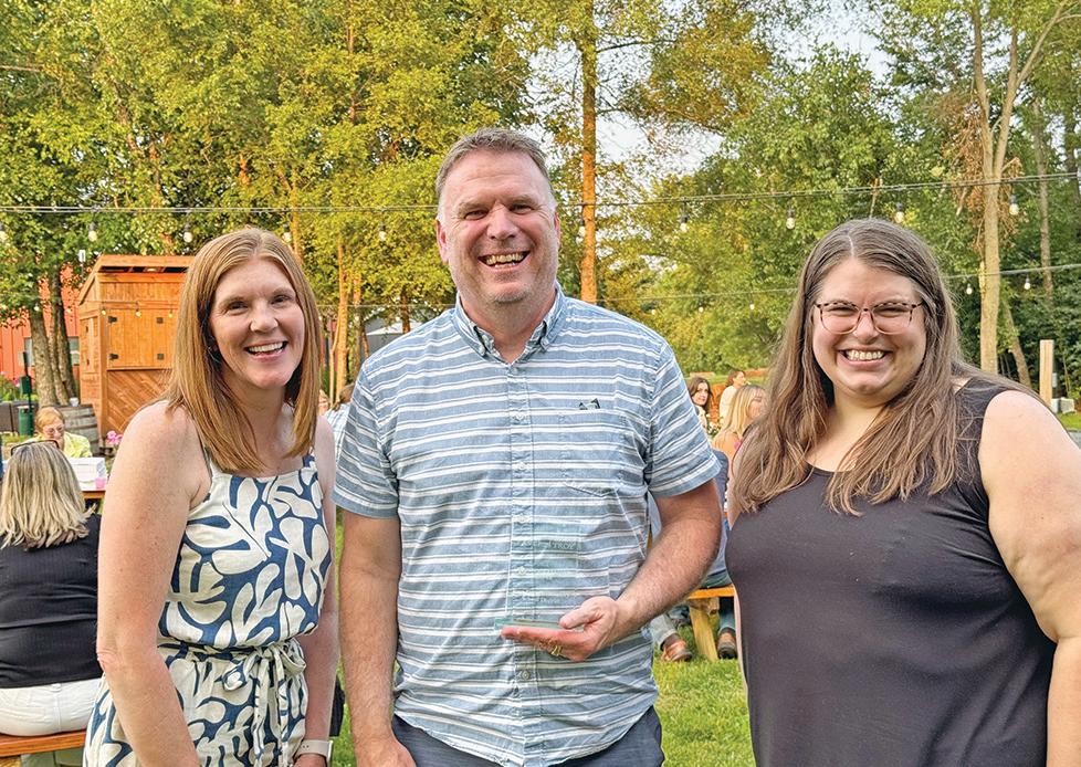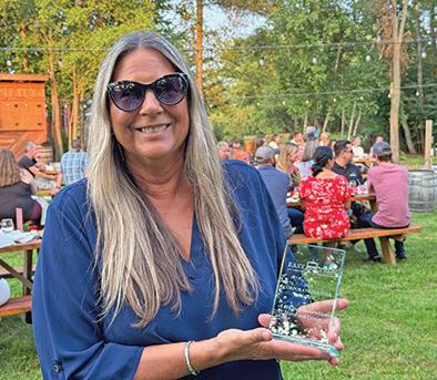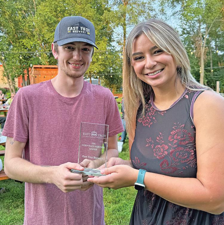 left: Hill Valley Dairy owners Ron and Josie Henningfeld accept the East Troy Area Chamber of Commerce’s 2024 Business of the Year Award during the Chamber’s Annual Dinner and Awards Night at The Hive Taproom July 22. The award recognizes business growth and success, community involvement and innovative efforts in the East Troy