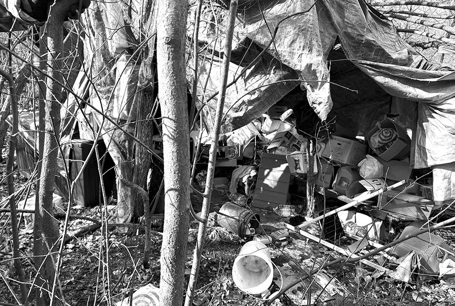 hidden in thick brush. A man, later identified as Christopher J. Hermanson, 63, with no permanent address, had been living there for about seven years. Despite being asked to leave, Hermanson refused, prompting the property owners to seek an eviction order.