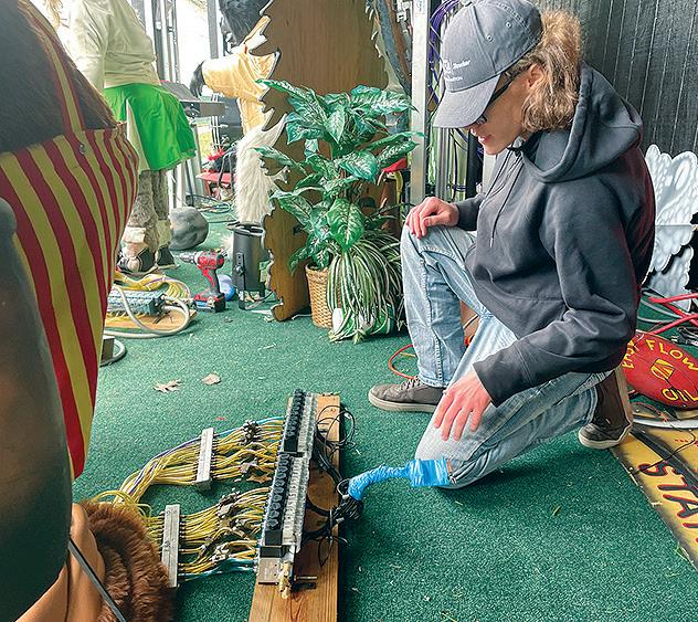 Over the winter and into this spring, Grams has overseen the construction of an enclosed 40-foot-by-10-foot stage for the band, with its larger-than-life bears, a bird, mouse, wolf, mongrel and gorilla. It will feature three garage-style doors that will open during shows. Also hard at work preparing the band for its re-debut has been 17-yearold Jacob Mickan of the Crystal Lake area.