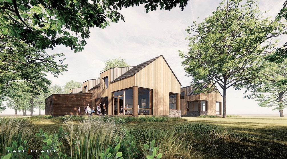 The Lake County Forest Preserves recently earned a prestigious award for its green initiatives. Shown above: A rendering of The Ryerson Woods Education Center, a netzero energy building, that is nearing completion. Left: Compostable cups are used at the Beer Garden at Independence Grove in Libertyville.