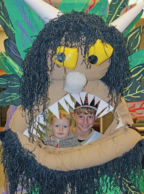 Jameson, 11, and his baby sister Meira, 19 months, enjoy entering “Where the Wild Things Are” on a Wednesday afternoon visit to the library and art exhibit.