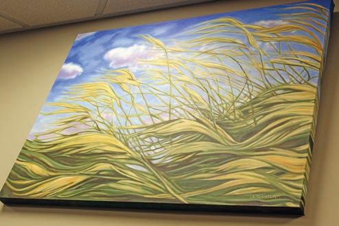 “Winds of Change,” an oil by James Richter depicts a trip the artist made to the Sugar River when the grass was blowing in the autumn wind.