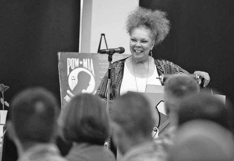 128th Air Refueling Wing on June 20. Above: Dr. Judy Alsobrooks Meredith, wife of James Meredith, a civil rights activist, author and Air Force veteran, speaks during a Juneteenth Day observation. The Merediths shared their experiences of
