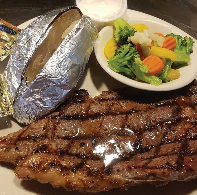 TRADITIONAL FAVORITES: New York Strip Steak, Ribeye Steak, Chopped Steak, Country Fried Steak, 1/2 Broasted Chicken, BBQ Ribs, Beef Liver ‘n Onions, Pork Chops, Homemade Meatloaf, Roast Turkey, Veal Cutlet, Shrimp Basket.
