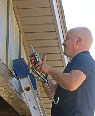 above: Contractor Ramon Morrones works on the front facade of Shooters Tavern and Golf Simulators in September. top: Chris Conigliaro, owner of Shooters Tavern and Golf Simulators, stands in front of his new business in the Village of Rochester.