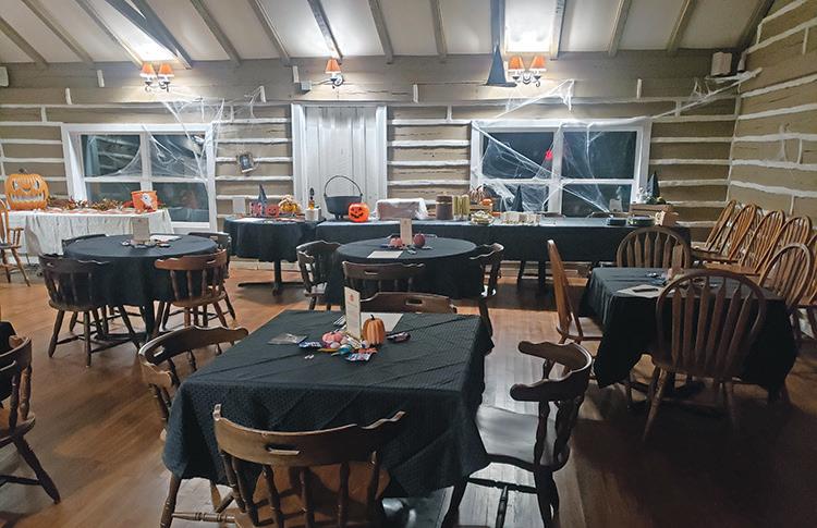 The main dining room at the H&H Wagon Wheel, shown here decorated for a Halloween Party, was originally a one-room schoolhouse built in the 1800s.