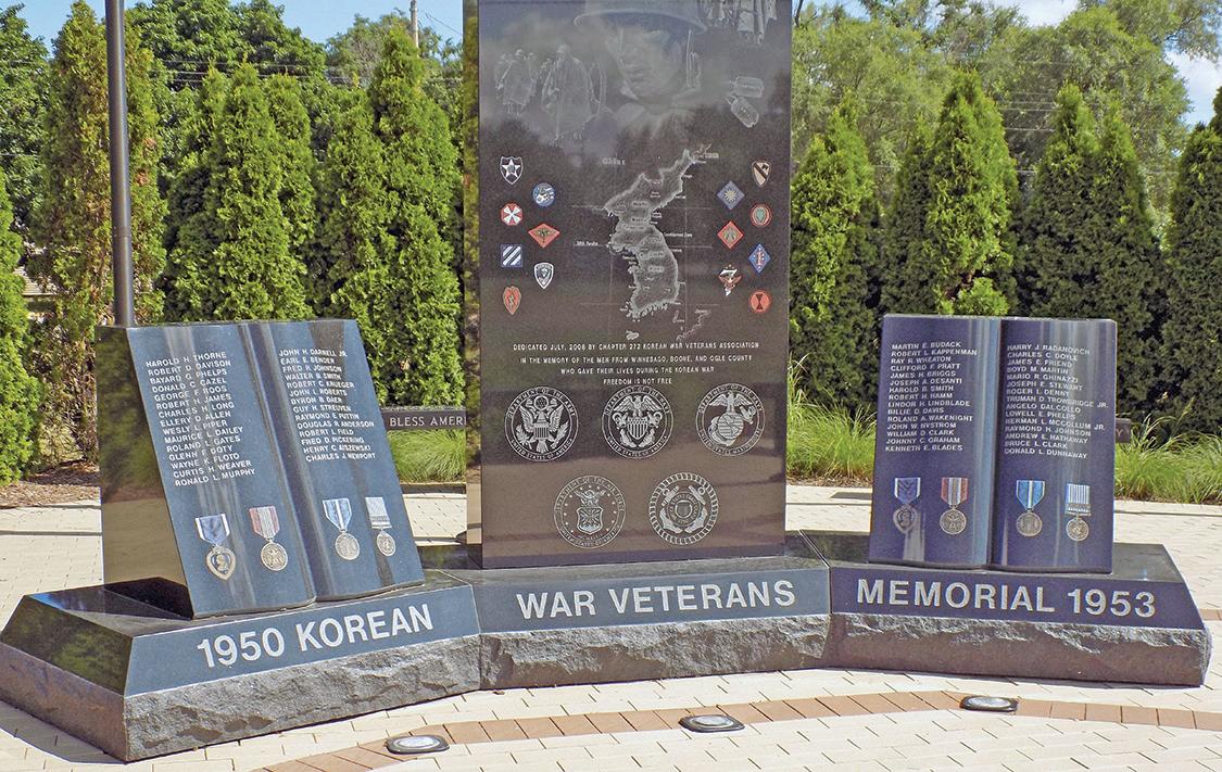 Designed by Gene Horvath with landscape design by John R. Cook & Associates. Maintained by the Rockford Park District. Dedicated Nov. 10, 1995.