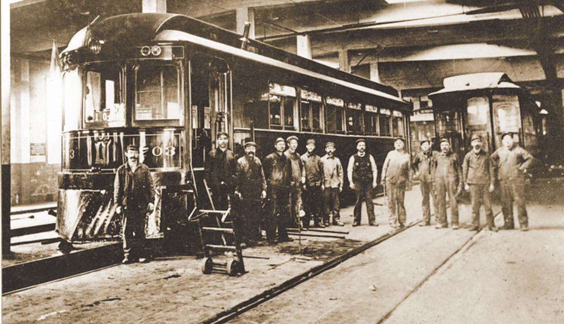 An interurban car and repair crew are pictured, circa 1911. This interurban barn was located at 5001 North Second Street in Loves Park. The interurban was a popular means of conveyance for quite a number of years for area residents who wanted to travel anywhere between Rockford and Janesville. Part of its route ran alongside of what is today Highway 251. The interurban tracks that ran up Main Street in Roscoe, are said to still remain beneath the pavement.