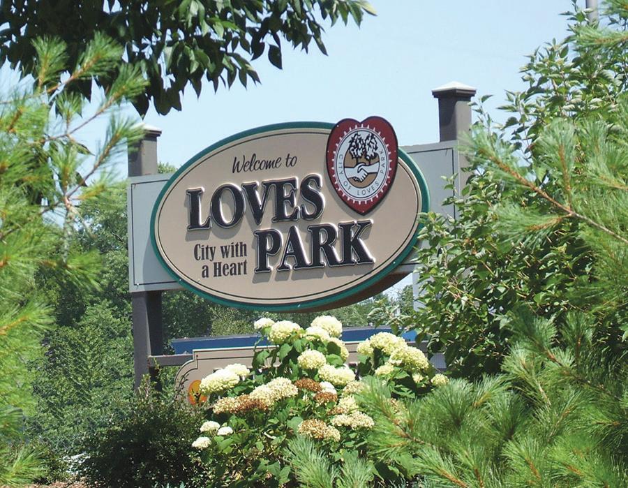 signs greet residents and visitors to Loves Park, the City with a Heart.