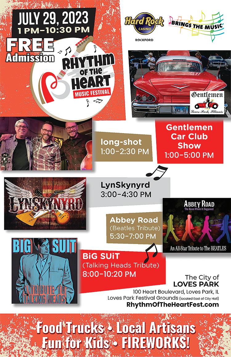 RHYTHM OF THE HEART 2023 4 Not a promise to lend; standard credit qualifications and some restrictions apply. Rates subject to change. Ask a credit union representative for details. Dedicated to providing quality financial services Federally insured by NCUA ROCKFORD BELL CREDIT UNIO N Better service, better rates... Because we’re MEMBER-OWNED! Our friendly experts offer all the best services of a bank, but better. As a notfor-profit institution, our goal is not to reap profits for shareholders — it’s to improve the lives of our members. To learn more, visit www.rbcu.net > Smart savings rates > Great loan rates + online tools > Focus on financial education > Online/Mobile access 4225 Perryville Rd Loves Park, IL 61111 815.636.2100 4 E. Main Street Mt. Morris, IL 61054 815.734.6427 Rockford Bell Credit Union 440731 FOOD TRUCKS: Mario’s Taco Express, Carlito’s Munchie Station, Anjan Eats, Kona Ice, Windsor Pizza Parlor, Vintage Goose, The Vice, WEH PAH – Puerto Rican Food Truck, The Olive Branch, Teppan Xpress, The Dessert Shop 815, Rascals Bar & Grill, EASY Tiger Food Truck. FIREWORKS 9:40