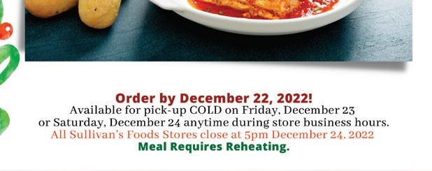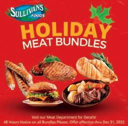 Page 12 SHOPPER’S GUIDE Wednesday, Dec. 14, 2022 409017 * Gloves * Socks * Slippers * Boots and Much More!!! Gift Certificates Available! 101316thAvenue 608-325-4464 Hours: M-Th10-5;F10-6,Sat 10-4 Shop For Holiday Gift Ideas Wolf Hollow Golf Course “Where Golf is a Breath of Fresh Air” 6546 N. Shippee Rd. • Lena • 815-369-5513 www.wolfhollowgolf.net 430090 Banquet room great for your holiday parties! HOURS Fridays & Saturdays All remaining golf merchandise on sale - UP TO 25% OFF Gift Certificates available Available at all Sullivans Foods including: 103 W North Ave, Stockton, 815.947.3318 OPEN 6AM TO 9PM 7 DAYS A WEEK MIX & MATCH! OVER 31 VARIETIES OF COOKIES & CANDIES AT $6.99 lb. ANNUAL COOKIE WALK!! DECEMBER 16th, 17th, 18th 11 AM - 7 PM DECEMBER 16th, 17th, 18th AM PM ONE DEAL A DAY December 13 - 24, 2022 12 DAYS OF CHRISTMAS DEALS From the Deli Hormel HAM LIMIT 2 Gotcha NAVAL ORANGES 8 lb bag LIMIT 2 Cool Whip WHIPPED TOPPING Select Varieties 8oz8 oz LIMIT 2 Head LETTUCE LIMIT 2 Fresh from our Bakery PUMPKIN PIE 8 inch LIMIT 2 PUMPKIN LIMIT 2 Prairie Farms 1% CHOCOLATE MILK gallon LIMIT 2 From our Bakery J. Skinner DANISH STRIPS Select Varieties USDA Choice BONELESS WHOLE NEW YORK STRIP Sliced & Wrapped While Supplies Last Choice BONELESS NEW STRIP Wrapped Wisconsin RUSSET POTATOES 8 lb bag LIMIT 2 Fresh From Our Bakery PUMPKIN PIE 8 inch LIMIT 2 Best Choice BUTTER Salted or Unsalted 1 lb quarters LIMIT 2 Head LETTUCE LIMIT 2 Best Choice CREAM CHEESE LIMIT 2 $1.99 $2.99 99¢ 99¢ 89¢ $3.99 $2.99 $2.99 lb $9.99 From The Bakery SKINNER DANISH STRIPS 12 oz Tuesday, Dec 13, 2022 ONLY Wednesday, Dec 14, 2022 ONLY Thursday, Dec 15, 2022 ONLY Friday, Dec 16, 2022 ONLY Saturday, Dec 17, 2022 ONLY Sunday, Dec 18, 2022 ONLY Monday, Dec 19, 2022 ONLY Tuesday, Dec 20, 2022 ONLY Wednesday, Dec 21, 2022 ONLY Thursday, Dec 22, 2022 ONLY Friday, Dec 23, 2022 ONLY Saturday, Dec 24, 2022 ONLY Prairie Farms 1% CHOCOLATE MILK gallon LIMIT 2 $2.99 Hormel DELI COOKED HAM LIMIT 2 Gotcha NAVEL ORANGES 3 lb bag LIMIT 2 Cool Whip WHIPPED TOPPING Select Varieties LIMIT 2 Josh Cellars WINE Select Varieties 750 mL LIMIT 2 USDA Choice BONELESS WHOLE NEW YORK STRIP Sliced & Wrapped While Supplies Last $2.99 $5.99 lb beer, wine & liquor Prices Effective: Wednesday, December 14 thru Tuesday, December 27, 2022 Michelob Beer Select Varieties 12 pk/12 oz Cans or Bottles 13.49 Budweiser Beer 18 pk/12 oz Cans or Bottles 14.99 Coors, Miller Lite or MGD Beer Corona, Modelo or Dos Equis Beer Select Varieties 12 pk/12 oz Bottles or Cans 14.99 Heineken, Amstel Light, Peroni or Pilsner Beer Select Varieties 12 pk/12 oz Bottles or Cans 14.99 Stella Artois Beer Select Varieties 12 pk/11.2 oz Cans or Bottles 14.49 Hennessy Cognac 750 mL 43.99 St. James Cranberry Wine 750 mL 6.99 7 Deadly Zins Wine Select Varieties 750 mL 9.99 Clos Du Bois Chardonnay 750 mL 7.79 Christian Brothers Brandy 750 mL 11.49 Fireball Cinnamon Whiskey Glass or Plastic 750 mL 13.99 Jim Beam Bourbon 7•Up Products Select Varieties 8 pk/12 oz Bottles 5.29 Snapple Tea Select Varieties 6 pk/12 oz Bottles 5.99 Core Water 30.4 Oz. 2/$3 Santo Tequila Blanco 750 mL 35.99 Santo Tequila Freeport Kahlua Coffee Liqueur 750 mL 19.99 Pepsi Products Select Varieties 6 pk/7.5 oz Cans 4/$12 Bubly Sparkling Water Select Varieties 8 pk/12 oz Cans 3/$11 Coca Cola Products Select Varieties pk/16.9 oz Bottles 4/$10 Ketel One Baileys Irish Cream Select Varieties 750 mL 26.49 Text Scan Rebate $6 Not available online Josh Cellars WINE Select Varieties 750 mL LIMIT 2 Frick’s PREMIUM SHANK PORTION HAM 1.99lb FRESH PICKLED HERRING & OYSTERS AVAILABLE WHILE Best Choice SPIRAL SLICED BONE-IN HAM Frick’s PREMIUM BUTT PORTION HAM 2.19lb Cook’s SMOKED SHANK PORTION HAM 1.59 2 WEEKS H LIDAY DEALS! Prices Effective: Wednesday, December 14 thru ALL ITEMS WHILE SUPPLIES LAST I NO RAIN CHECKS CHRISTMAS EVE STORES CLOSE AT 5PM | CHRISTMAS Cook’s SMOKED BUTT PORTION HAM 1.79lb SULLIVAN’S FOODS GIFT CARDS AVAILABLE AT SERVICE DESK! Cook’s SMOKED BONE-IN WHOLE HAM 1.99 430184 9416W.WagnerRd,LenaIL|815.369.5300|millfurnishings.com Tues-Sat 10am-5pm, Sun 12-4pm 409678 Shop Local for the Holidays Personal Service - Local merchants save you time, get to know what you like and the service is free, right in your backyard. Support Your Children - Local merchants put their hard-earned money back into the community. Advise on Gifts - Local merchants might know the person for whom you are seeking a gift. One-of-a-Kind Items - Discover hand-made and unique items with your local flavor. This is Your Local Economy - Money you send today in your community helps build for tomorrow by providing tax dollars, jobs and many other luxuries. Before you go out of town, check out your own hometown business to see what they can offer you. • Great Gift Ideas • • Save Time, Money & Gas • • Support Local Merchants •