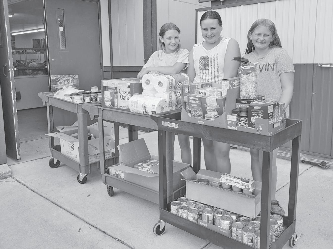 From April through the end of July, 4-H Ambassadors collected food items for food pantries in the area. During the deliveries to the food pantries, the youth learned more about how the food pantries operate and what it takes to keep them going. Pictured here are (from left to right) Kinzy DeHaven, Mya Mitchell, and Raelynn Yaeger delivering food to the Davis Food Pantry.