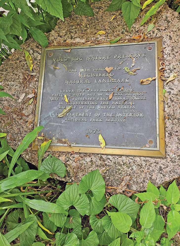 Volo Bog, because it includes all stages of bog succession, was designated a National Natural Landmark in 1972. A plaque noting the designation can be seen at the beginning of the bog path.