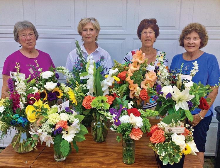 Displaying Sunshine Flowers are members Priscilla Rutter, Debbie Hoffman, Traudl Koberlein and Pat Leucht who had spent the day creating the arrangements for hospice patients.