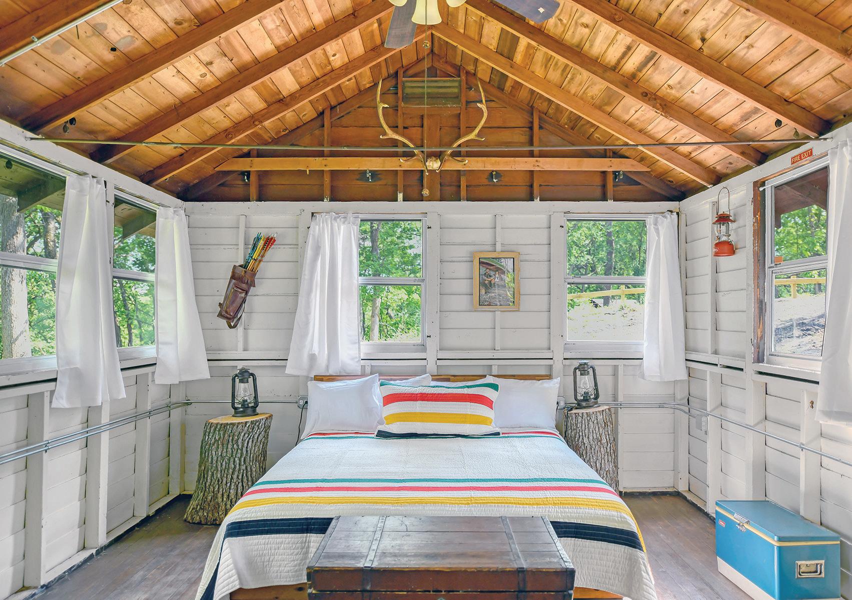 above: Each cabin on site has unique décor such as this one, which features a variety of simple antiques to add to the ambience the cabin offers. at left: A glamping experience can easily be found at Camp Kettlewood in this camper with features such as a coffee maker, stove and electricity.