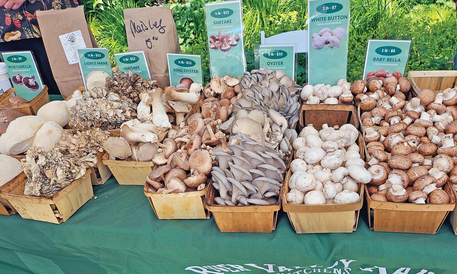 stands. Mushrooms, grown indoors, are available throughout the market season and while the types vary, fresh mushrooms and can also be purchased.