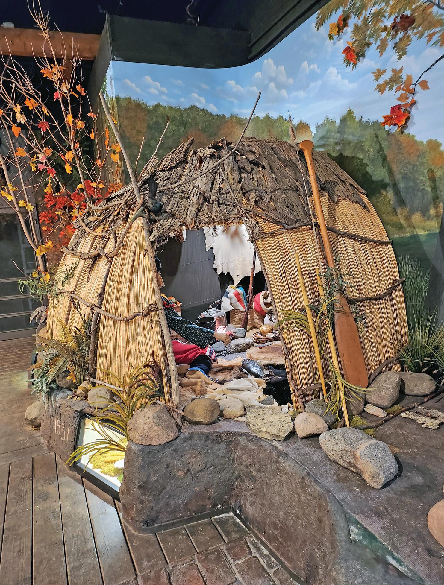 top: A wigwam recreation is among the museum displays that capture the history of the area. at right: A view down Main Street with Santa’s sleigh parked on the street. Is he here waiting to visit with children of the area?