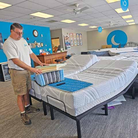 Westman stands near an adjustable frame, which can add comfort and prevent snoring.