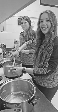 Chapter Secretary Bindi Boop and Chapter Reporter Berkeley Mensendike work on making eggs and gravy for the Staff Appreciation Breakfast.