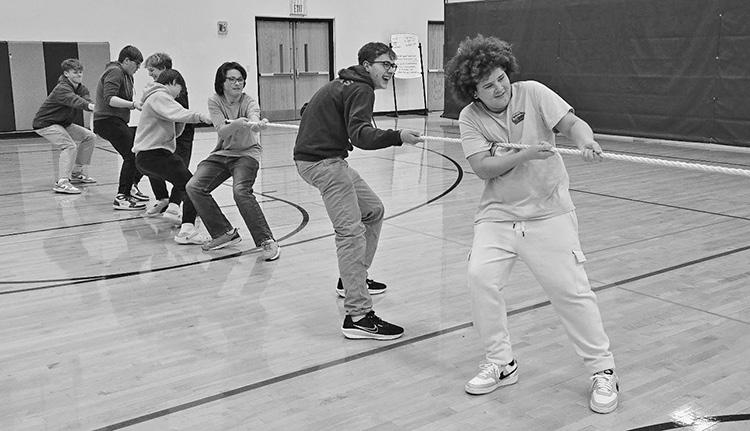 SUBMITTED PHOTO Rock Valley Publishing Justice Easter, Wes Haas, Damien Ware, Russel Howard, Bryce Randall, Jason Lucas and Wyatt Lehman give it their all in tug-o-war.