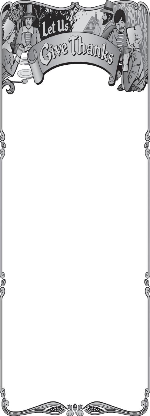 I know several people who already have their Christmas trees up. I saw a great cartoon with a fat turkey standing on a fat Santa. The caption said, “It isn’t your turn yet, Fat Boy.” I laughed because everywhere you look Christmas is ap pearing, and we forget about Thanksgiving. I love the food at Thanksgiving—the sweet potatoes, the stuffing, he pump kin pie, and all the things in between. We will get ready for the big turkey fest next week.