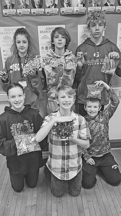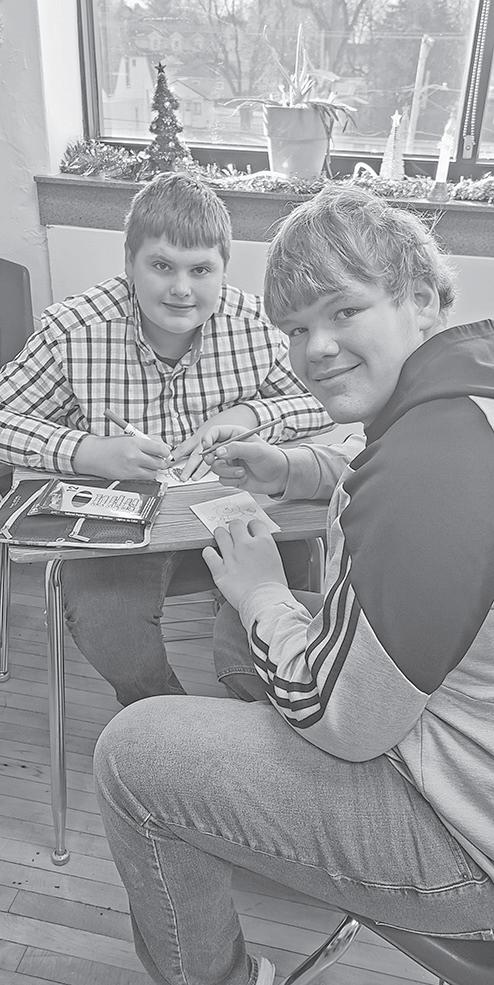The River Ridge FFA Chapter hosted their annual food drive the week before Thanksgiving. Students from the elementary and high school generously donated a vari ety of items to help those in need this holiday season. The elementary students had a grade-level competition in which the 2nd graders collected over 175 items to do nate. The paper and food products were used to stock the shelves at the High School “Cat’s Care” pantry and the remainder of the items were delivered to the Eliza beth Food basket. There were over 780 items collected overall. Pictured here are Arthur Horn and Cora Dittmar as they collect and sort donations.