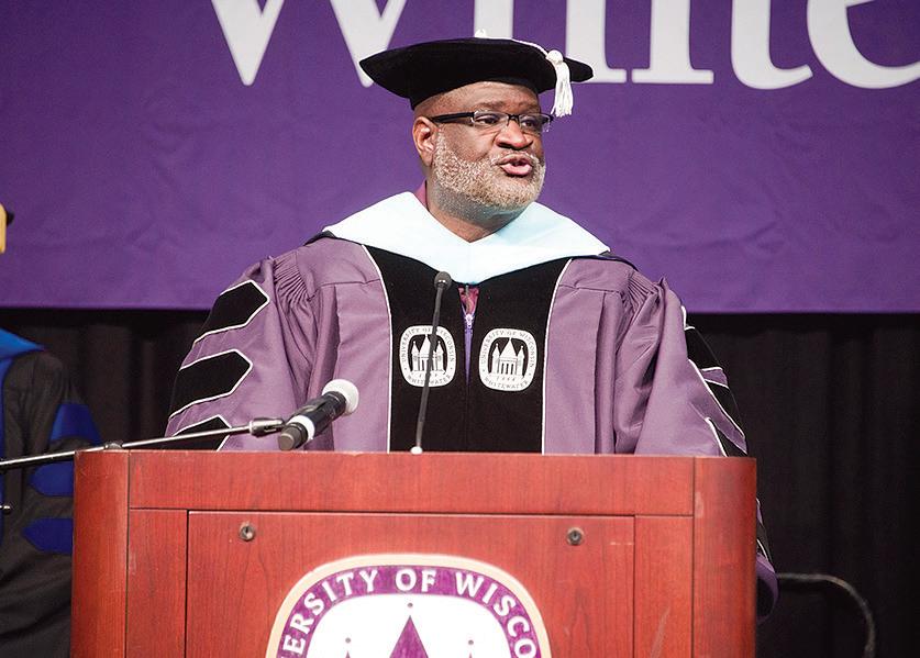 Chancellor Corey King speaks to graduates at the University of Wisconsin-Whitewater’s spring commencement. Shortly after being appointed chancellor, King spoke to Whitewater Rotarians and shared his ideas for the university moving forward.