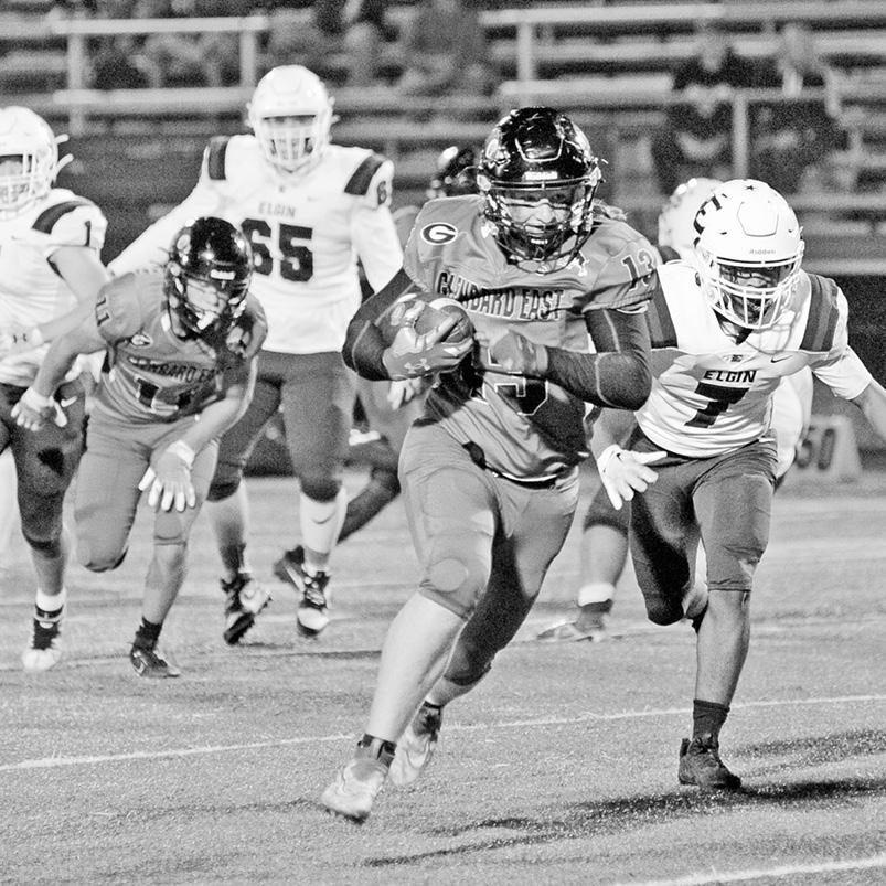 Glenbard East’s football team beat Elgin 56-7 on Friday night in Lombard. The Rams improved their 2023 season record to 5-1 with the win. Playing its homecoming game, Glenbard East built a 49-0 halftime lead in the Upstate Eight Conference matchup against the Maroons. Glenbard East senior Matt Larson (No. 1 - above left) is pictured during his 55-yard punt return for a touchdown with about nine minutes left in the first quarter. Senior Augustus Winkler (No. 13 - above right) is shown during his 29-yard interception return for a touchdown with about six minutes remaining in the opening quarter. The Rams held a 28-0 lead at the end of the first quarter. Glenbard East’s season continues with tonight’s conference game against Fenton. The game will be played at Triton College in River Grove.