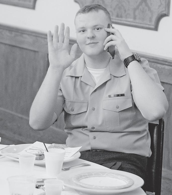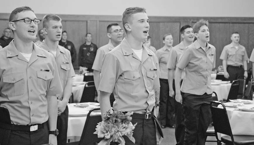recruits, who were seated at sever al tables in the post’s main hall— the Sid Bergh Room. The meal included roasted turkey, sweet potatoes, mashed potatoes, green beans, stuffing, cranberries and a variety of desserts.