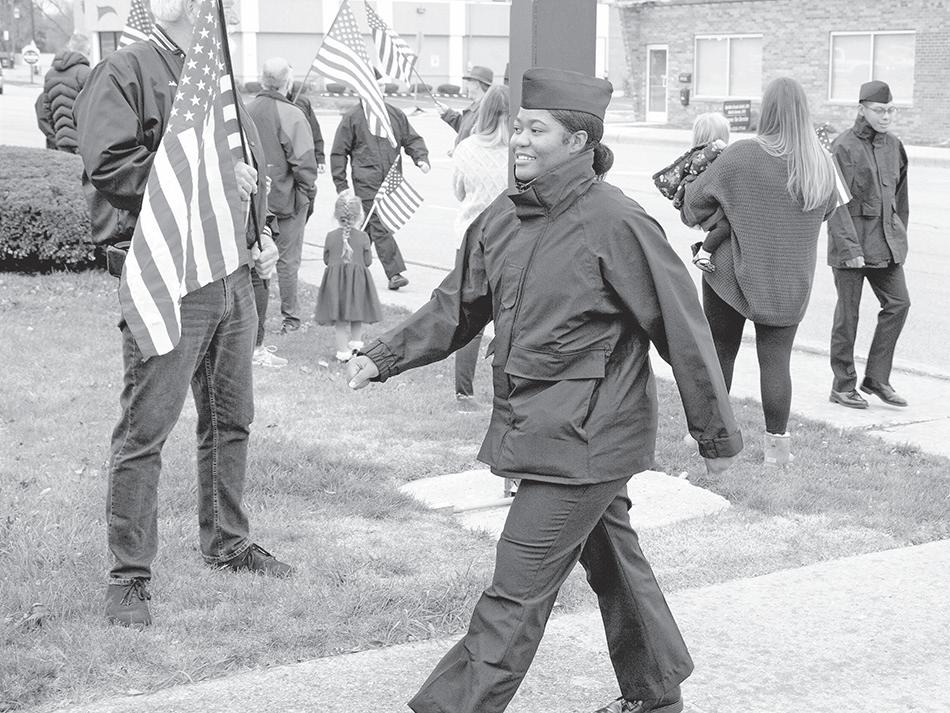 The recruits arrived at the post at about 9:30 a.m. Volunteers wav ing American flags lined the side walk to welcome the recruits as they approached the post’s front door.