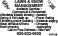 ING OPPORTUNITY For details on placing an ad in our Classified Section Call 630-834-8244 or 630-627-7010 The Elmhurst Independent The Addison Independent • The Bensenville Independent Villa Park Review • Lombardian Find us online: theindependentnewspapers.com 422796 Landscaping/ Lawn/Garden PAUL BUNYON & SONS • Seasoned Hardwoods • • Stacking Available • (Cell) 708-328-0709 (Office) 708-681-9031 Ask for Christian (4th Generation) 429049 395580 CONCRETE RESTORATION Overlay - Epoxy - Repair RESTORE/REPLACE CONCRETE Stoop - Steps - Drives Garage Floors & More! * Licensed/Bonded/Insured * mynorconcrete.com Bobby 630.520.5812 Mynor 630.631.3073 431425 HANDYMAN 35+ years in trades Painting & drywall repairs, tile, flooring, etc. Dave 630.796.9296 Firewood CURT’S HANDYMAN SERVICE No job too small EXCELLENT REFERENCES • Gutter Cleaning • Painting • Plumbing • Electric • Drywall Repair • Carpentry Trim • Siding Repair • Doors Installed • Roofing 630-747-3244 FREE ESTIMATES • curtwex1@gmail.com 370024 MIDWEST HAULING *Contractors *Homeowners *Residential Clean-outs, Furniture, Appliances All Debris 630-873-9884 411005 421176 AL’S DECORATING SERVICE • Interior & Exterior Painting • Power Washing Anything The Home Repair & Improvement Company No job is too small! Free Estimates ~ Call 630-853-3059 393528 Thomas-Vil Painting • Interior Painting • Small Exterior • Wallpaper Removal • Drywall Repair Fully insured; Free estimates 630-941-1893 425230
