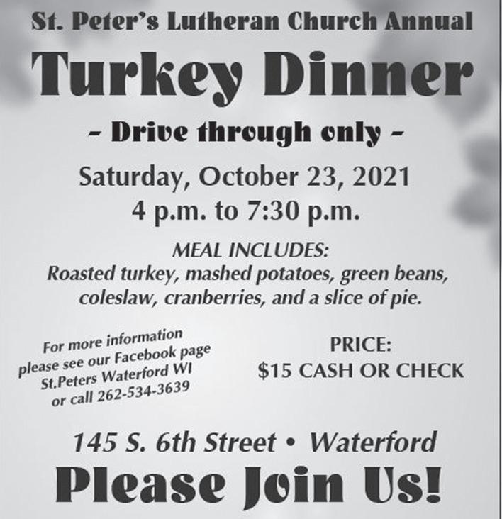 The Honey Lake Protection & Rehabilitation District is soliciting bids for repairs to our playground equipment. Repairs include replacing wood platforms, and replac ing swing supports, swings and hardware. Contractors must provide proof of insurance. For a copy of the bid form with project details, call Doug Webb at 262-210-0287 Bids must be received by October 31, 2022 RETURN SEALED BIDS TO DOUG WEBB OR BY MAIL TO: HONEY LAKE PROTECTION AND REHABILITATION DISTRICT P.O. BOX 565, BURLINGTON, WI 53105 High School Scholarship Bunco Fundraiser! at Evergreen Country Club Elkhorn • 2-5 pm $20 Ticket includes: Bunco Dice Game & Appetizers Fun for Ladies and Gentlemen! Purchase before Oct 29 from Elkhorn Area Women’s Club PO Box 571•Elkhorn, WI 53121 Contact: Kathy 262-742-2602 Sunday: nov. 6th, 2022 CaSh BunCo PrizeS Wine & Gift Certificate Pulls $500 Cash Raffle • Cash Bar! 426770 JOIN OUR VIP CLUB! TEXT REINEMANS TO 262-254-5650 VISIT OUR WEBSITE: www.reinemans.com BURLINGTON 417 Milwaukee Ave. reinemanstvburl@truevalue.net phone: (262) 763-3577 fax: (262) 763-1853 Mon. - Fri. 7:00 a.m. - 7:00 p.m. Sat., 7 a.m.-6 p.m.; Sun. 9:00 a.m. - 3:00 p.m. BEHIND EVERY PROJECT IS A In Burlington Since 1906 Free Gift Wrapping on all your Reineman’s Purchases GIFT CERTIFICATES AVAILABLE PADDOCK LAKE 24708 75th St., Rt. 50 (262) 843-2422 Mon. - Fri. 8:00 a.m. - 7:00 p.m. Sat. 8:00 a.m. - 5:00 p.m. Sun. 9:00 a.m. - 3:00 p.m. 426942 IT’S GLOCKTOBER TIME! (Free Background Checks On All In-Store Purchased Glocks Through October 31, 2022) Stop In And See Our Full Selection Of Handguns • Rifles • Shotguns (Burlington store only) *Photos are representative only, actual product may differ from photos G30 .45 acp Gen 4 (PG3050201) Reg. $679.99 Glocktober Price: $550.00 G29 10MM Gen 4 (PG2950201) Reg. $649.99 Glocktober Price: $585.00 G19 9MM Gen 3 (PA1955203) Reg. $599.99 Glocktober Price: $500.00 G44 .22 Amgio Custom 2 Bbl Set (VA4450301AOTB) Reg. $579.99 Glocktober Price: $477.00 G19M 9MM Anglo Custom Agent (PM195F30A) Reg. $799.99 Glocktober Price: $735.00 G48 9MM (PA4850701) Reg. $549.99 Glocktober Price: $450.00 G43X 9MM Red Dot Included (VX4350201FRMOSSC) Reg. $799.99 Glocktober Price: $710.00 426855 HAUNTED HAYRIDE - Register online www.ThreeHarborsScouting.org/HauntedHayride H AUNTED AYRIDE & WALK 2022 Friday, Oct. 21 Saturday, Oct. 22 Friday, Oct. 29 Saturday, Oct. 29 7 P.M.-9 P.M. CAMP OH-DA-KO-TA 3363 Dyer Lake Road Burlington, WI OPEN TO THE PUBLIC • $8 ONLINE, $10 AT THE DOOR • PREPARE AND DRESS FOR THE WEATHER • MAY BE SCARY FOR YOUNG CHILDREN • CONCESSIONS AVAILABLE FOR ADDITIONAL COST