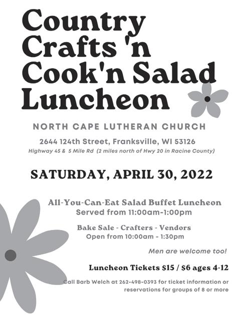 HI-LITER • APRIL 10-16, 2024 • 8 Lawn & Garden Find Everything You Need For Your Lawn & Garden With These Local Businesses! Hours: Mon.-Fri. 7-5:30; Sat. 7:30-3; Sun. 10-1 1024 10th Ave. • Union Grove, WI 453639 453638 Otter Sales & Service 1197 Milwaukee Ave. Burlington, WI 53105 www.ottersalesandservice.com 262-763-3563 453642 641 N. Lincoln Street, Elkhorn, WI 53121 Phone: (262) 723-7945 Fax: (262) 723-7945 REG. $75.96 • SALE THRU 5/31/24 A FAMILY OWNED AND OPERATED BUSINESS FOR MORE THAN THREE GENERATIONS 453641 & Landscape Supply, LLC. • (262) 763-4645 OVER 10 DIFFERENT TYPES OF MULCH!! NE w PRODUCTS • Hemlock • Cedar •Hardwood Shredded Bark W573 State Road 11 (County Trunk JS) Burlington, WI www.arborimages.com •Delivery AvAil Able• M-F 7:30 AM - 4:00 PM SAT. 8:00 AM - 12:30 PM • variety of landscape stone • straw matting • grass seed • fertilizer • sand & gravel CA ll To DA y To orD er ! (262) 763-4645 453039 SATURDAY, APRIL 20, 2024 Luncheon Tickets $17 / $6 ages 4-12 Call Kenda at 262-498-9532 or Rhonda at 262-308-6704 for ticket information or reservations for groups of 8 or more Briggs Rd. E-Free Church SUNDAY APRIL 14th 4:30PM Invites you to our community 4654 Briggs Rd., Elkhorn, WI 453676 453654 rochester area historical society annual Spring Tea SATURDAY, MAY 4 • 10 to 12 NOON doors open at 9:15 ROCHESTER VILLAGE HALL 300 Spring Street, Rochester Hear a presentation by Irene Adler on how she outsmarted Sherlock Holmes JOIN US FOR ENTERTAINMENT • PRIZES • SURPRISES • RAFFLES • SILENT AUCTION Bring Your Favorite Tea Cup & Saucer Tickets are $10 Available at the door or Call Joni at 262-534-2071 QUALITY CLOCK REPAIR & SALES 262-716-6029 OPEN DAILY TUESDAY - SATURDAY 160 E. Chestnut Street (In the loop) Burlington,WI kesslersclockcompany@gmail.com 389117 WE DO SERVICE CALLS FOR GRANDFATHER CLOCKS 449659 Professional Income Tax Preparation Average Fee $50 for Federal, State and Efile. Located in city of Burlington. Call or text Barb at (262) 498-6751 LAKE GENEVA, WI · 262-248-0600 Call us for a FREE consultation Farm, Homes & Cabins, Commercial, Horse, Garage, Wood Shop Custom Designed & Value Engineered Financing available • Digital Floor Planner • Customized, in-house Engineering and manufacturing to suit your needs Get started at ClearyBuilding.com 800-373-5550 • ClearyBuilding.com Featuring: 453205 The construction season begins! Let’s design and build your new Northland building together! 453233 JOE REUTER HL
