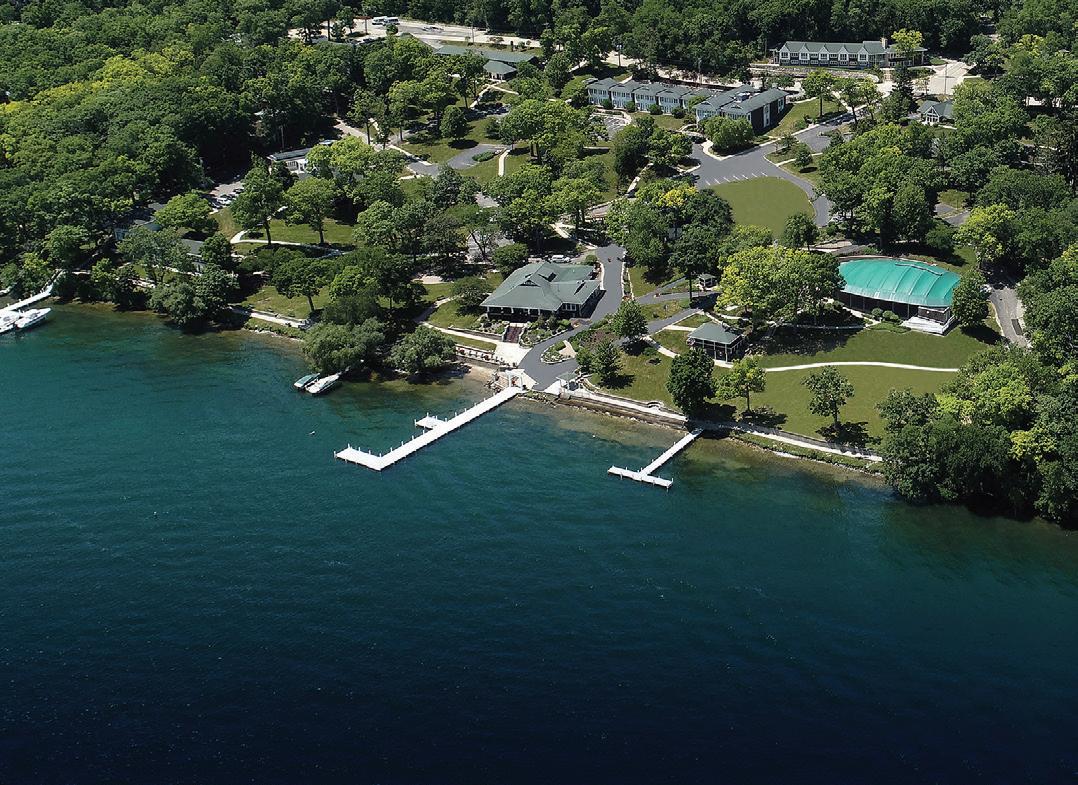 history of the mansions on the shore of Geneva Lake while visitors leisurely relax on one of the historical boats of the Lake Geneva Cruise Line.