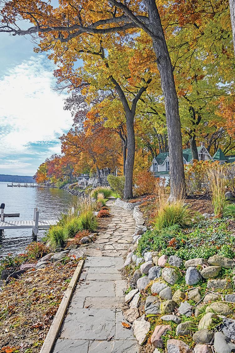 below: The Shore Path along Geneva Lake can be paved, gravel or ungraded as one meanders around the shore.