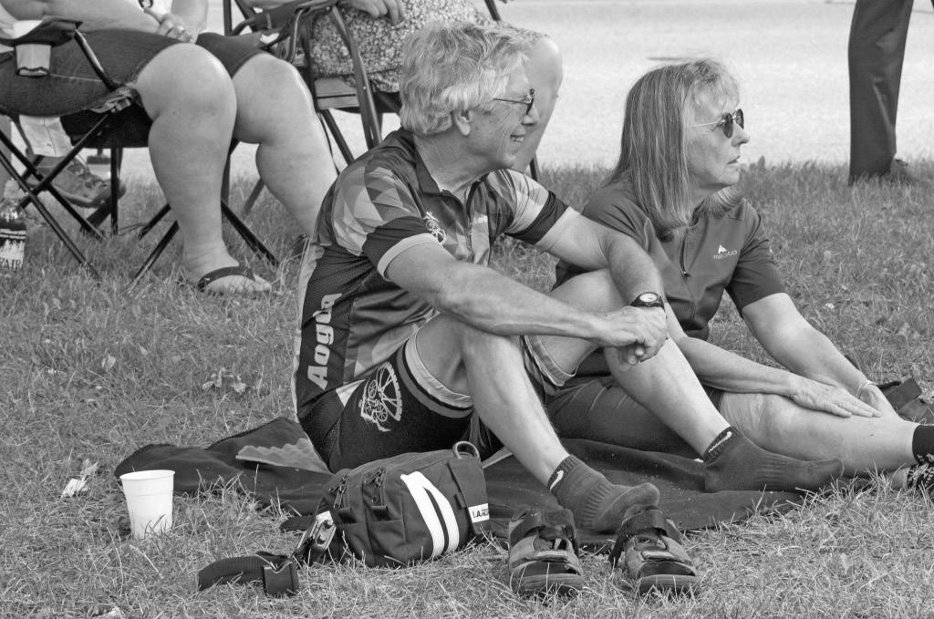 The City of Whitewater continues to host its Savory Sounds concert series each summer. On July 20, the band Tapestry performed over the lunch hour, with grilled brats and lemonade available from the Whitewater Arts Alliance. at right: Chuck and Barb Taylor bike in from LaGrange for the concerts.