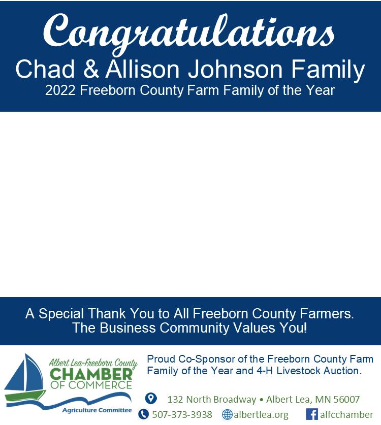The annual Agricultural Luncheon has been a tradition for over 40 years! As part of this annual gathering, the Albert Lea-Freeborn County Chamber of Commerce Agriculture Committee and the University of Minnesota Extension service recognize a “Farm Family of the Year” each year.