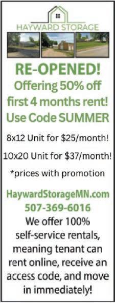 Deadline for ALL Display Ads is 5 pm the ursday prior to the following Tuesday’s publication of the Freeborn County Shopper.