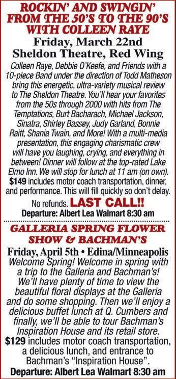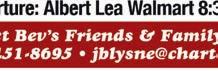 Departure: Albert Lea Walmart 9:00 am